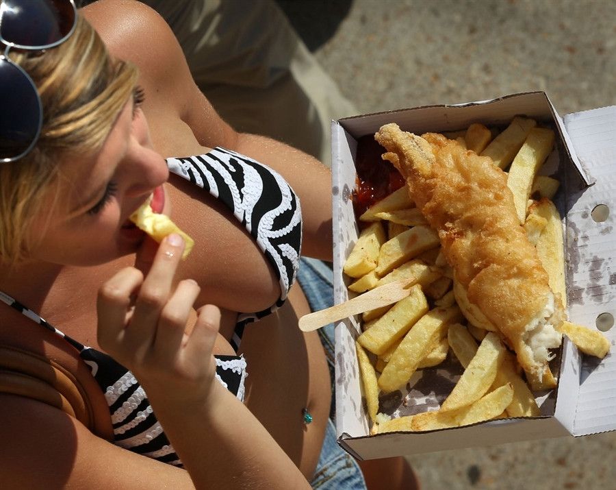 Fish, fries, catsup and cardboard? |